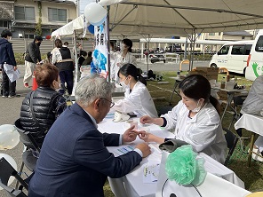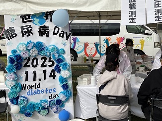 先日、すみれ病院でも、病院周囲で行われた「福祉まつり」に参加し、World Ⅾiabetes Deyの活動として血糖測定や健康相談などを行いました。